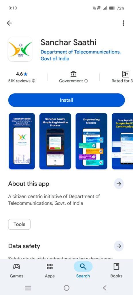 • Launch the Play Store or App Store and look for “Sanchar Saathi”.